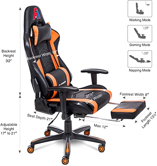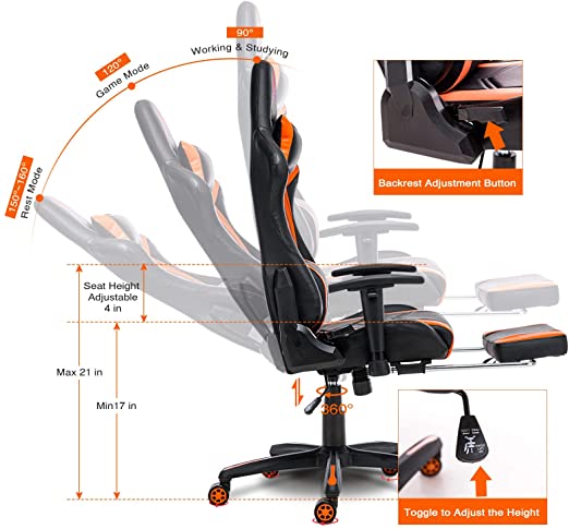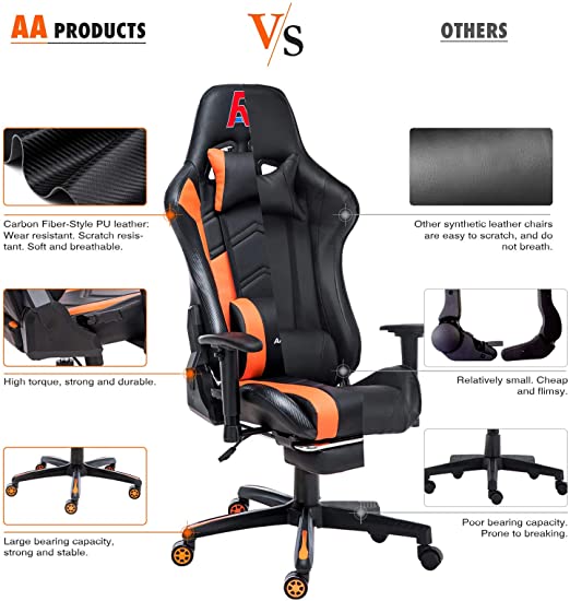 HomeChair AA Products Gaming Chair Ergonomic High Back Computer Racing Chair Adjustable Office Chair with Footrest, Lumbar Support Swivel Chair – BlackOrange