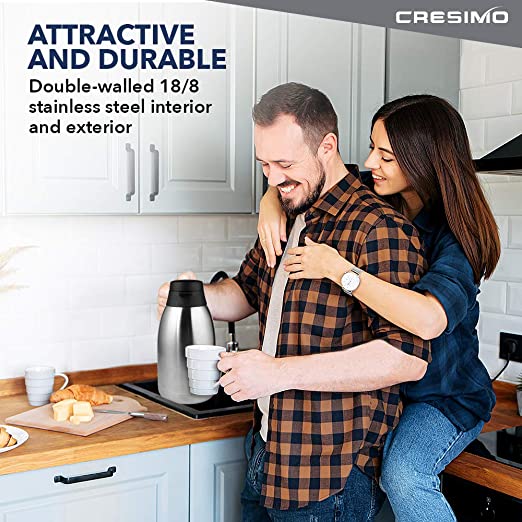 Be the first to review “Cresimo 68 Oz Stainless Steel Thermal Coffee Carafe / Double Walled Vacuum Flask / 12 Hour Heat Retention / 2 Liter Tea, Water, and Coffee Dispenser” Cancel reply