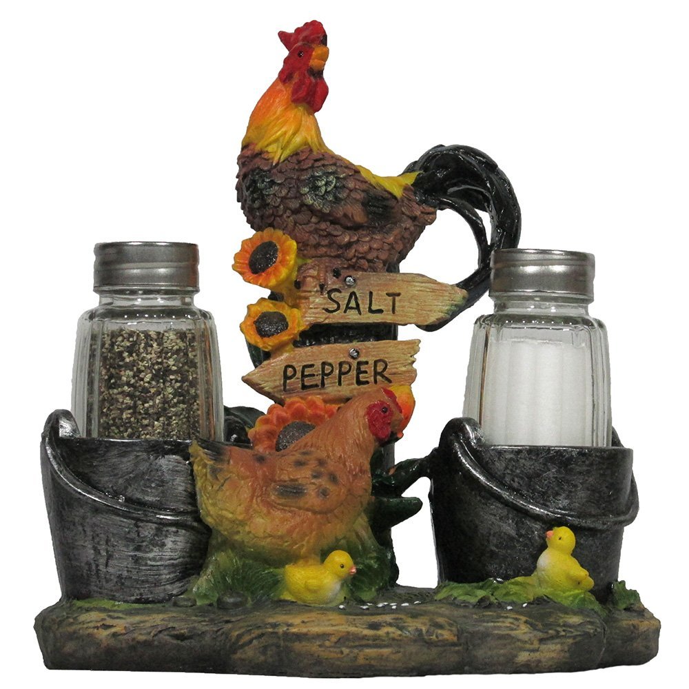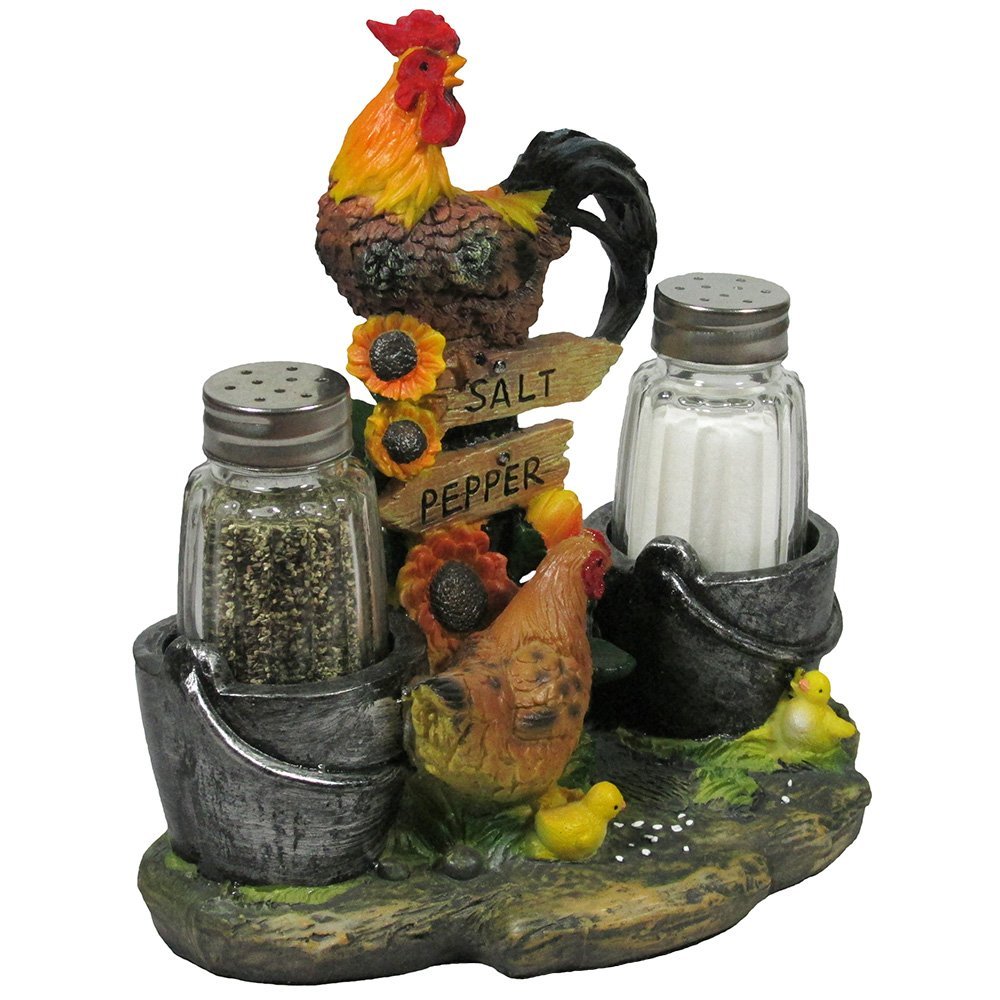 HomeTableTopPepper Shakers Decorative Farm Rooster with Hen and Chicks Salt and Pepper Shaker Set for Country Kitchen Decor by Home ‘n Gifts