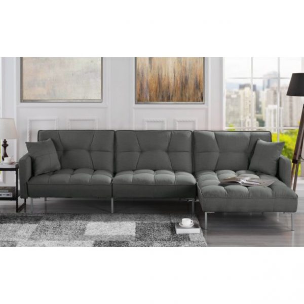 Mobilis Modern Square Tufted Linen Fabric Sectional Sofa Futon with Reversible Chaise, Dark Grey €366.11 €362.72