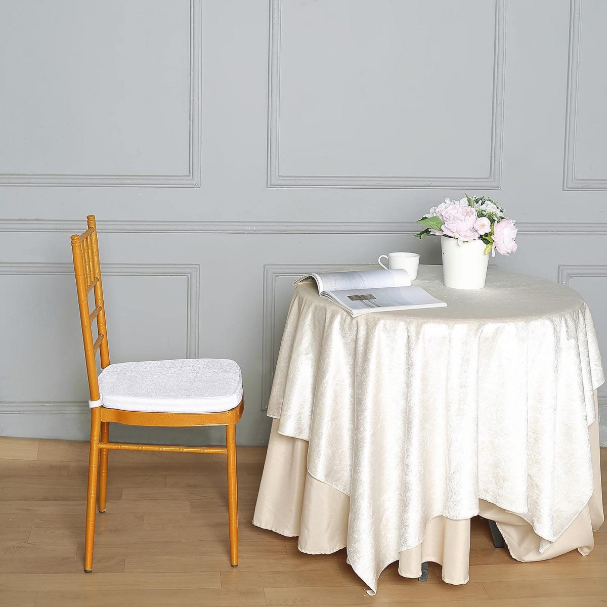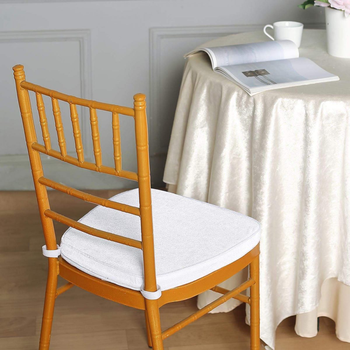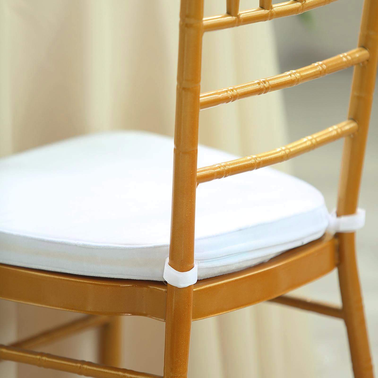 These comfortable Chiavari Chair Cushions are perfect fit for our Chiavari Chairs. Perfect for use during any wedding, reception, conferences, or any event you have planned! These chair covers come in a variety of colors, to help match perfectly for your event.Additional Information:High Quality Velvet CoverTie Less Skid Proof BackingAttachment straps help hold the cushion in placeZippered back allows for padding to be removedFits Chiavari ChairsUses : Wedding, Party, Event, Beechwood and Chiavari Chairs Cushion