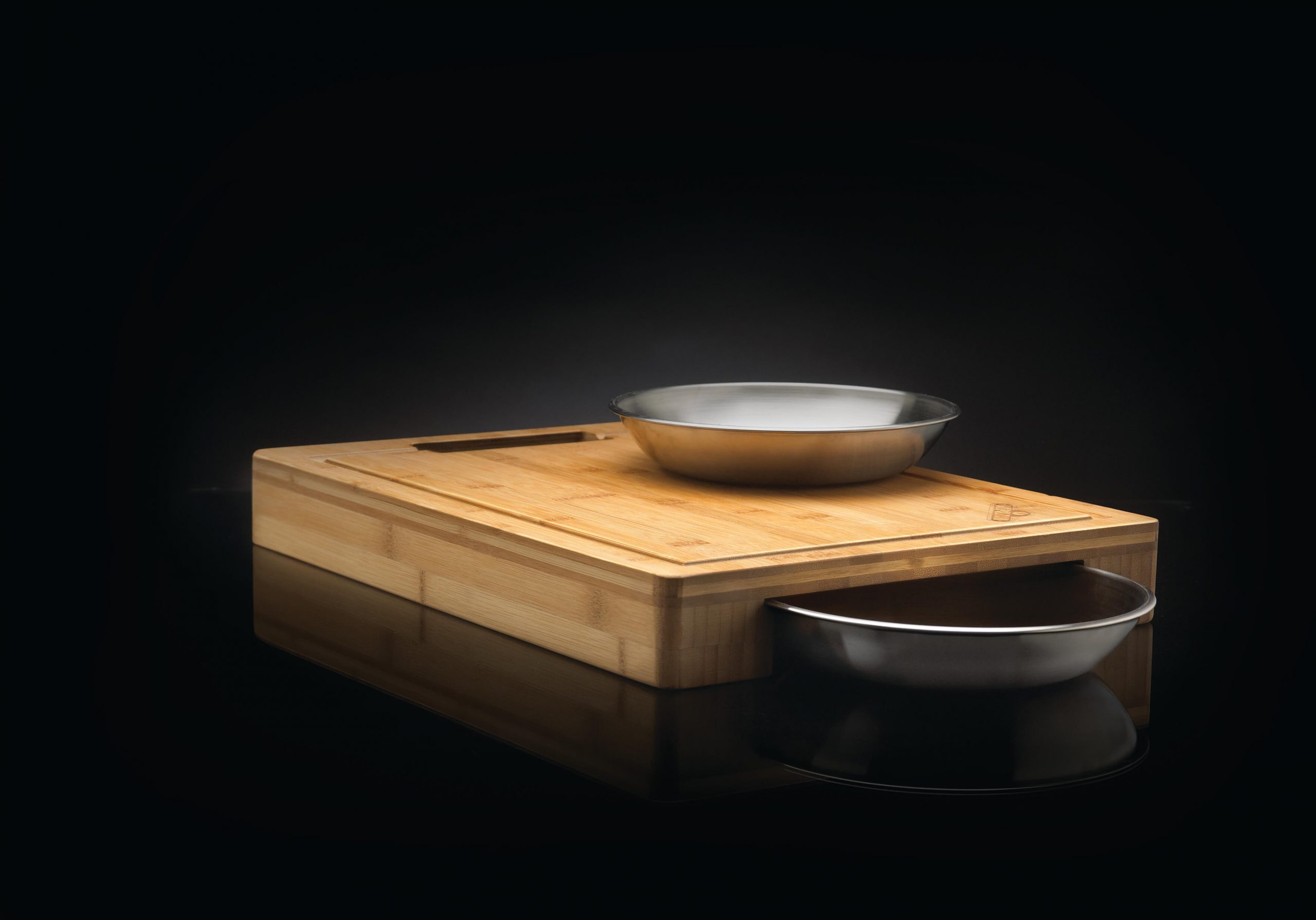 Napoleon PRO series cutting board and bowl set comes with durable bamboo cutting board and two stainless steel bowls. With an anti-bacterial surface made from bamboo wood, the Napoleon cutting board is perfect for prepping foods for your grill. The two stainless steel bowls conveniently hide away inside the clever cutting board design. Also included in the clever design is a trough that will capture the juices that can easily be poured into the bowls through the handles.Durable Bamboo, Two Stainless Steel Bowls, Hideaway Design, 1 Year Warranty