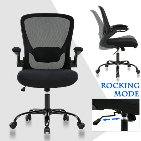 HomeChair Office Chair Ergonomic Desk Chair Mesh Computer Chair Swivel Rolling Mid Back Task Chair with Lumbar Support Flip-up Arms Massage Adjustable Chair for Women Adults(Black)